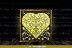 Heart Mandala 3D Layered Papercut Clipart Bundle