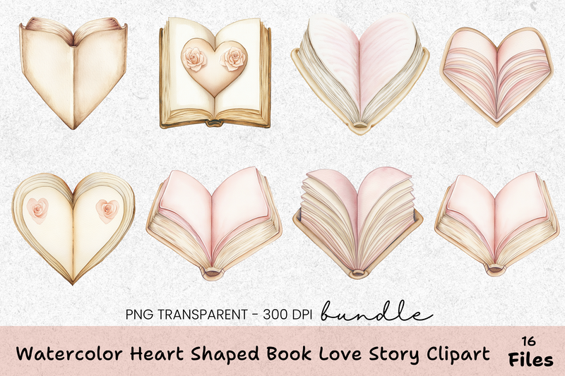 Capture romance with our Heart Shaped Book Love Story Clipart Bundle, perfect for creating enchanting wedding invitations, romantic scrapbooks, and heartfelt greeting cards. This versatile collection features beautifully crafted heart-shaped book designs, ideal for adding a touch of love to any project. Whether you're designing for Valentine's Day, anniversaries, or just because, these cliparts are sure to inspire creativity and passion. Elevate your crafts with this unique bundle and let your love story shine.
