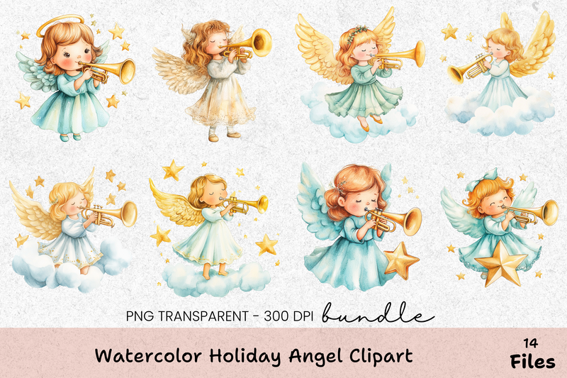 Enhance your festive projects with our Holiday Angel Clipart Bundle, featuring charming angel designs perfect for Christmas crafts and seasonal decorations.