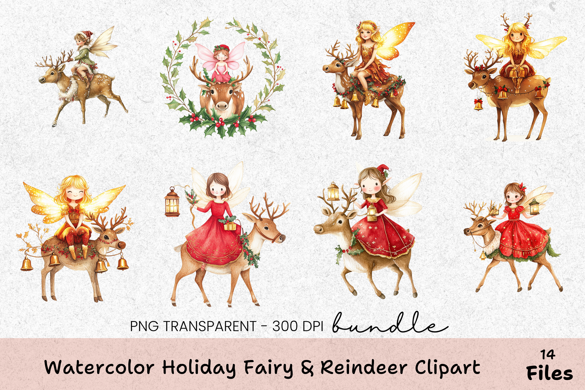 Unleash festive creativity with our Holiday Fairy & Reindeer Clipart Bundle, featuring charming fairy and reindeer designs perfect for holiday crafts and decorations.
