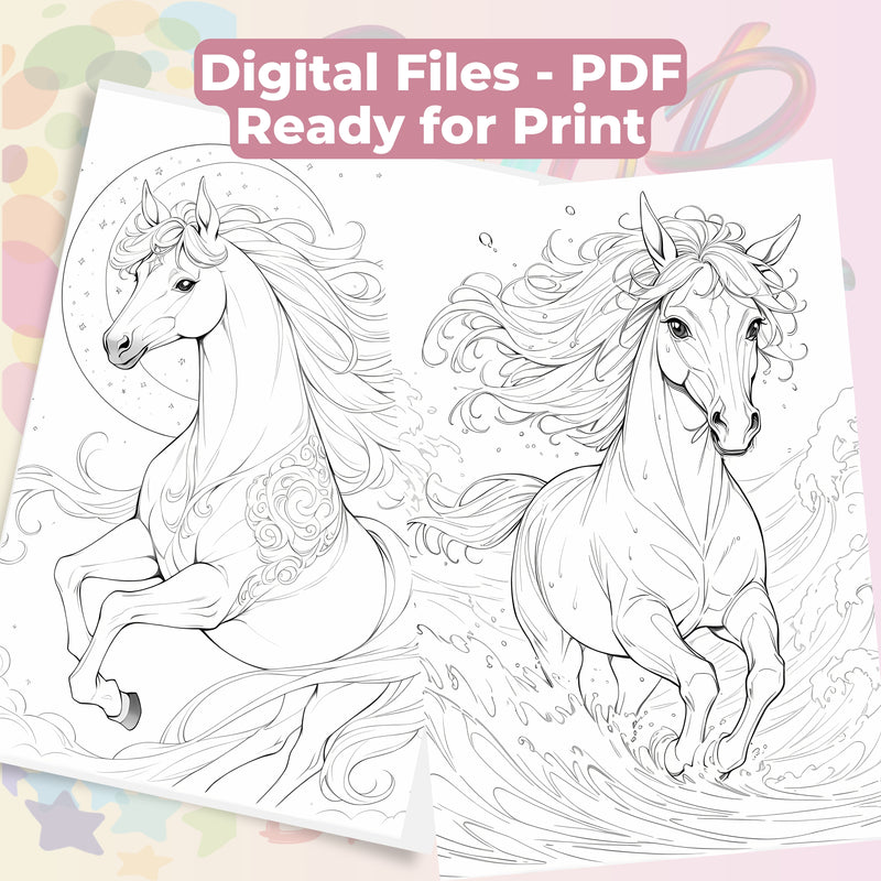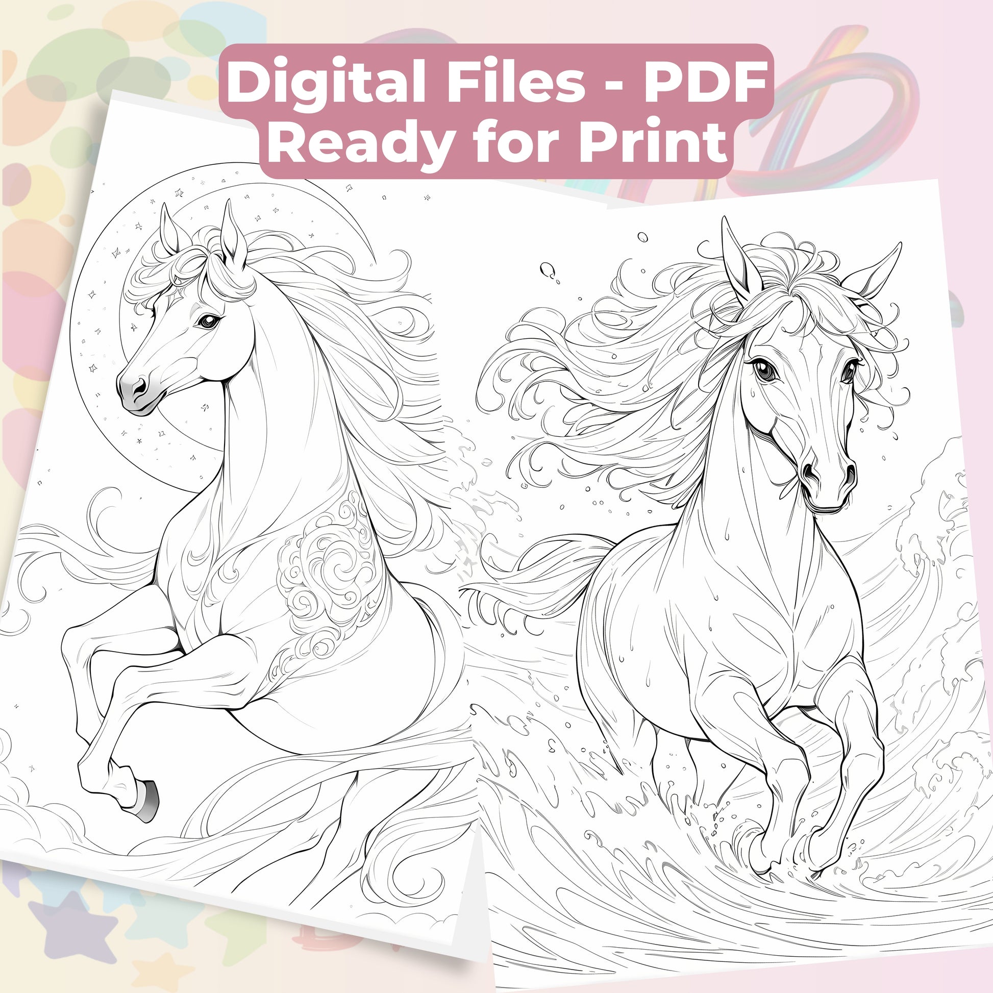 Unleash creativity with our Horses Coloring Books Bundle, featuring stunning equine designs perfect for horse lovers of all ages. Dive into a world of majestic stallions and serene pastures, ideal for relaxation and artistic expression.