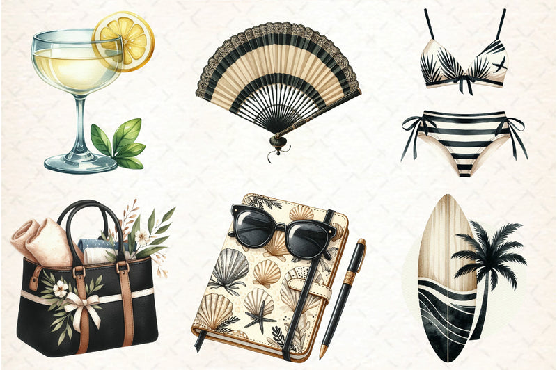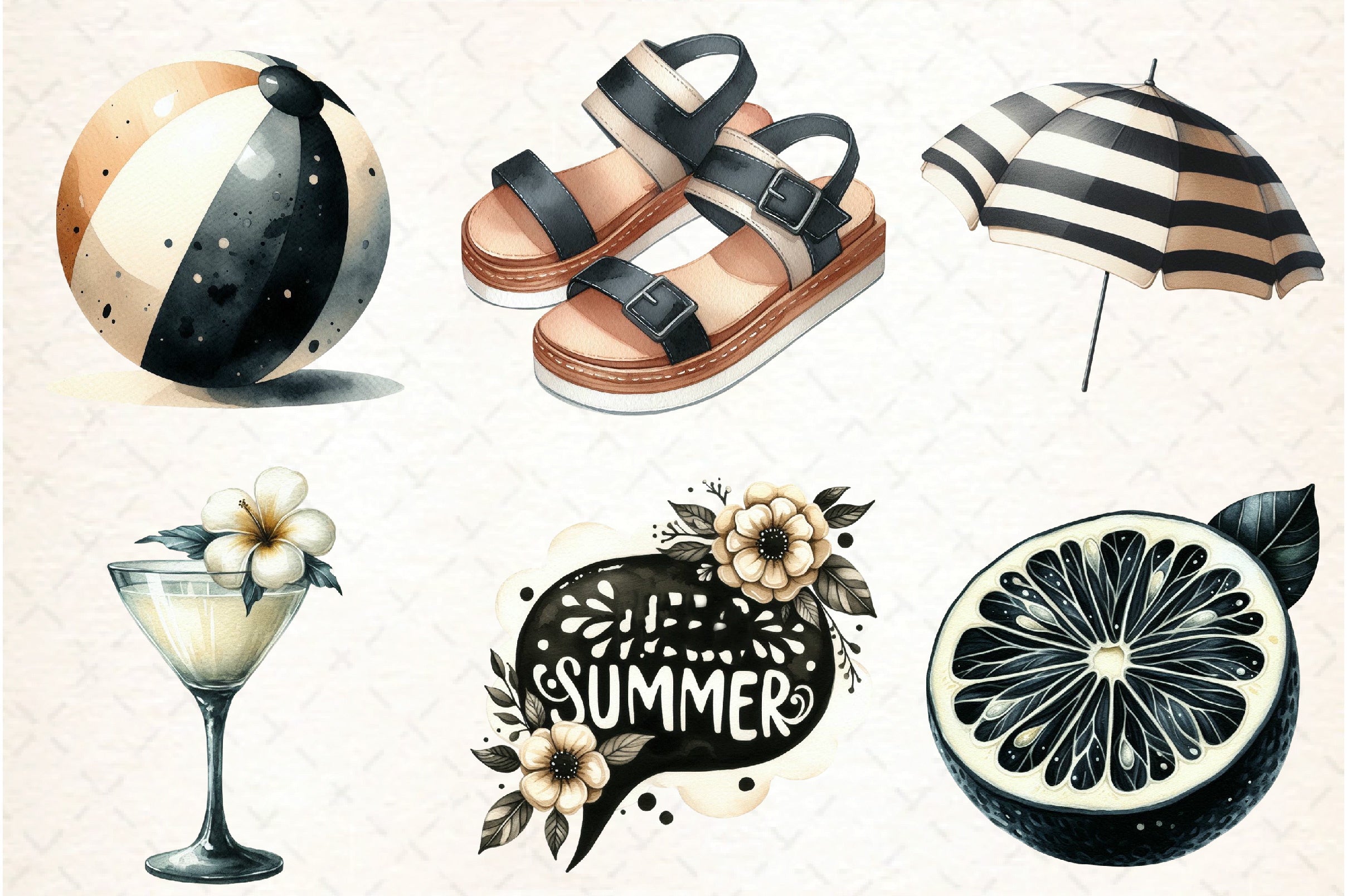Elevate your creative projects with the Ivory and Black Hello Summer Clipart Bundle. This versatile collection features chic, minimalist designs perfect for summer-themed invitations, scrapbooking, and digital art. Unleash your creativity with high-quality, easy-to-use graphics that add a touch of elegance to any project. Ideal for designers, crafters, and DIY enthusiasts looking to capture the essence of summer in their work.