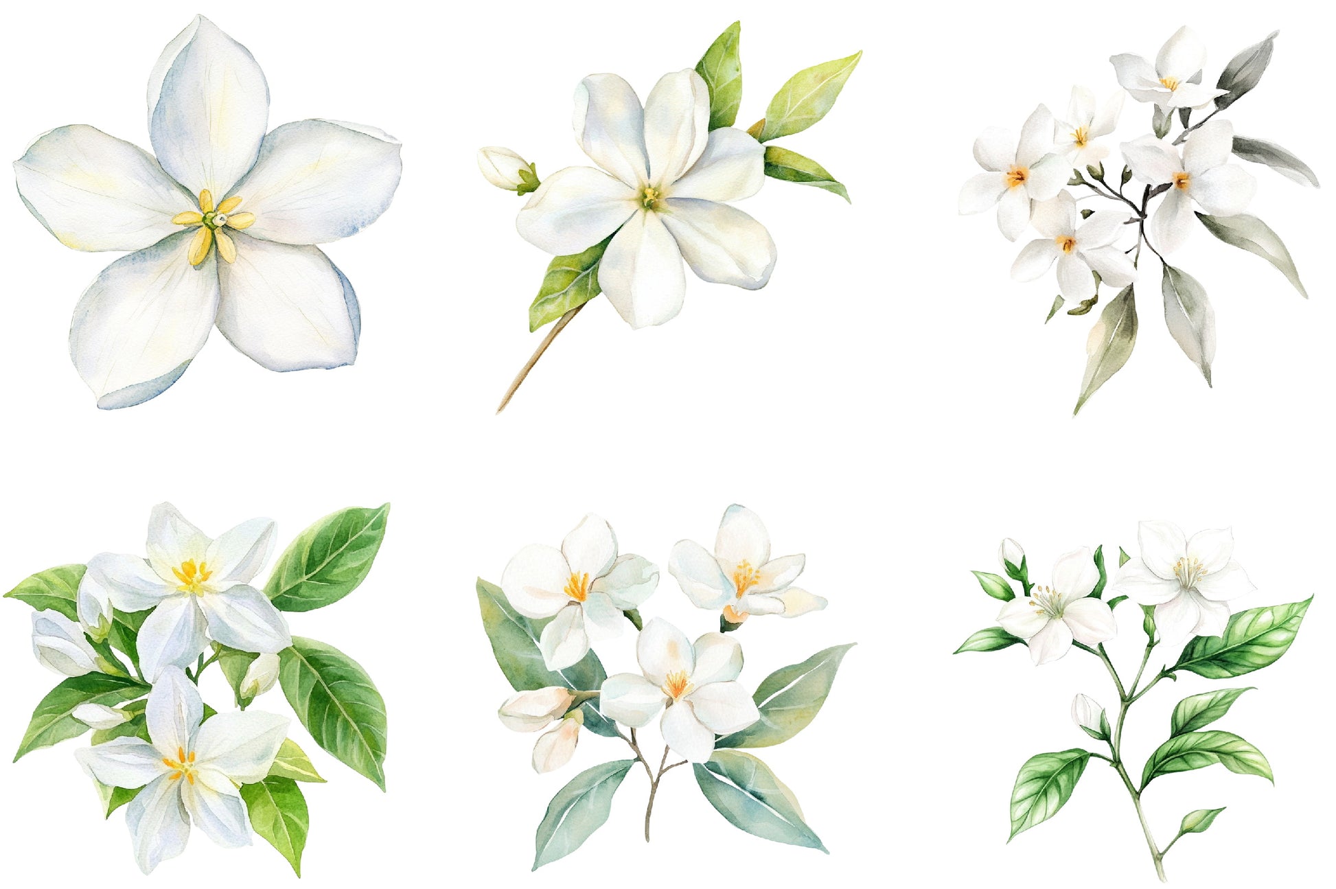 Enhance your creative projects with our Jasmine Flower Bloom Clipart Bundle, featuring exquisite floral designs perfect for wedding invitations, scrapbooking, and digital art. Unleash your imagination with these versatile, high-quality illustrations, ideal for adding a touch of elegance to any craft. Discover the beauty of nature with this stunning collection, designed to inspire and captivate. Perfect for artists, designers, and DIY enthusiasts seeking unique and charming floral elements.