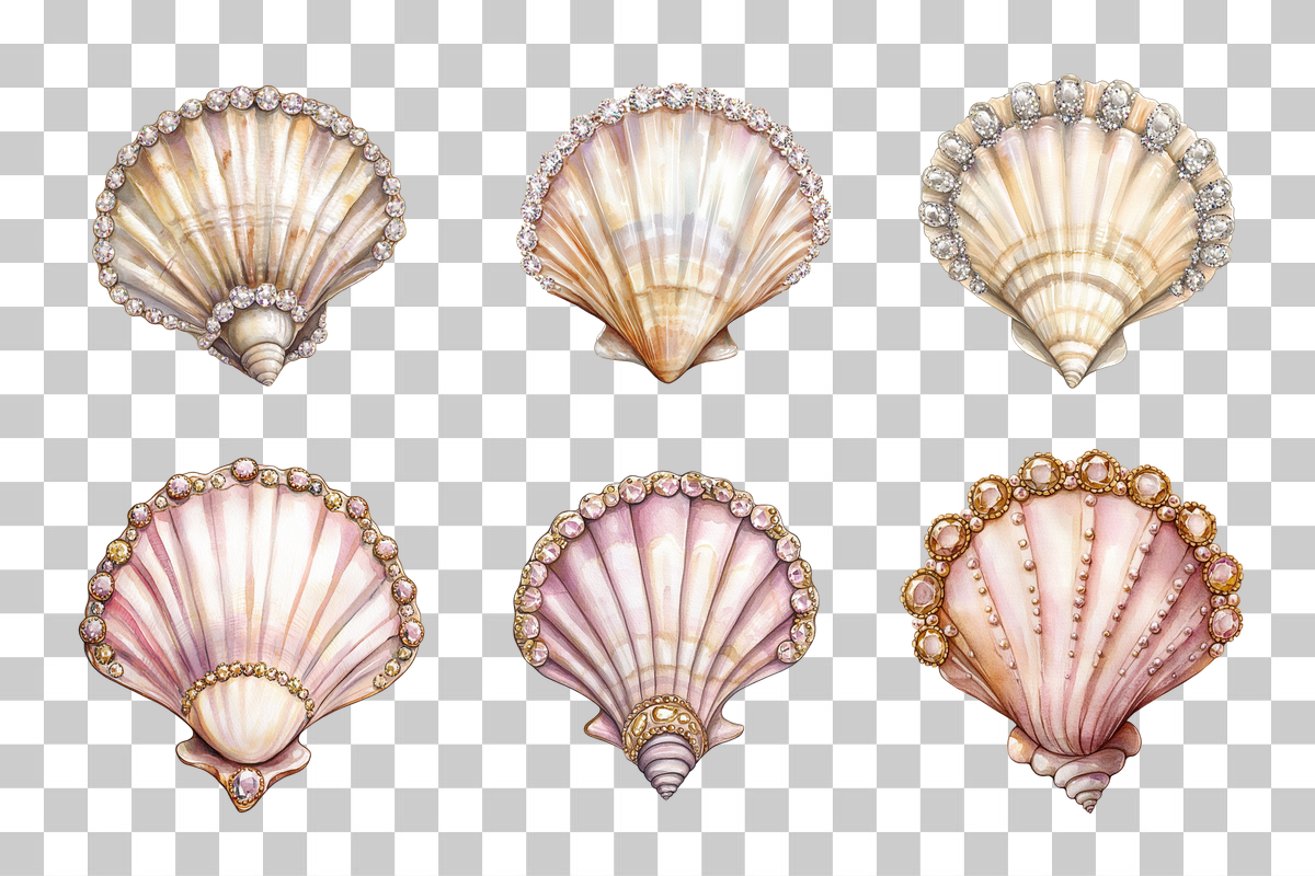 Jeweled Seashell Clipart Bundle