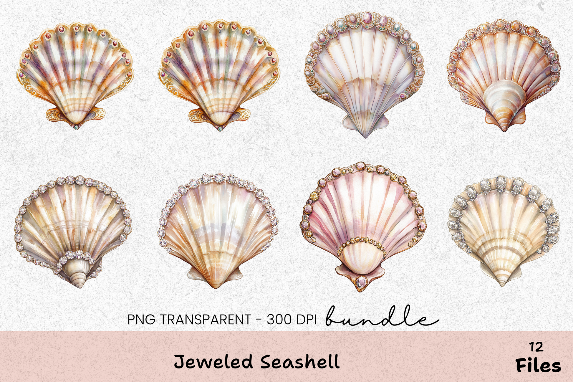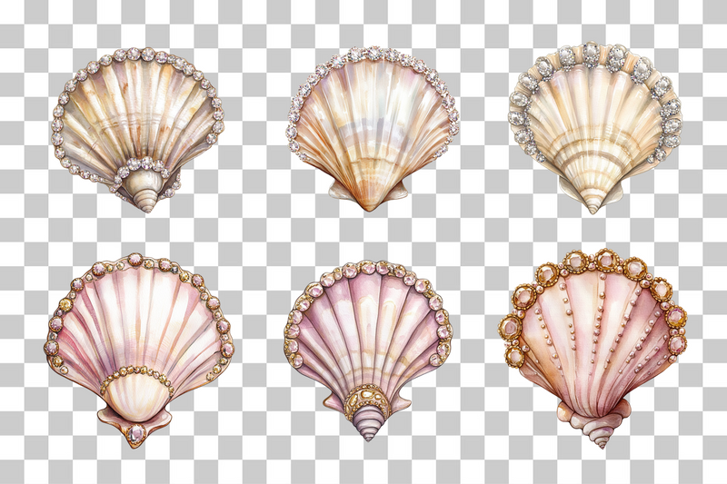 Enhance your creative projects with the Jeweled Seashell Clipart Bundle, featuring stunning seashell designs adorned with sparkling jewels. Perfect for beach-themed crafts, invitations, and digital scrapbooking. Dive into a world of oceanic elegance and transform your designs with these exquisite clipart elements. Ideal for artists, crafters, and designers seeking a touch of coastal glamour.
