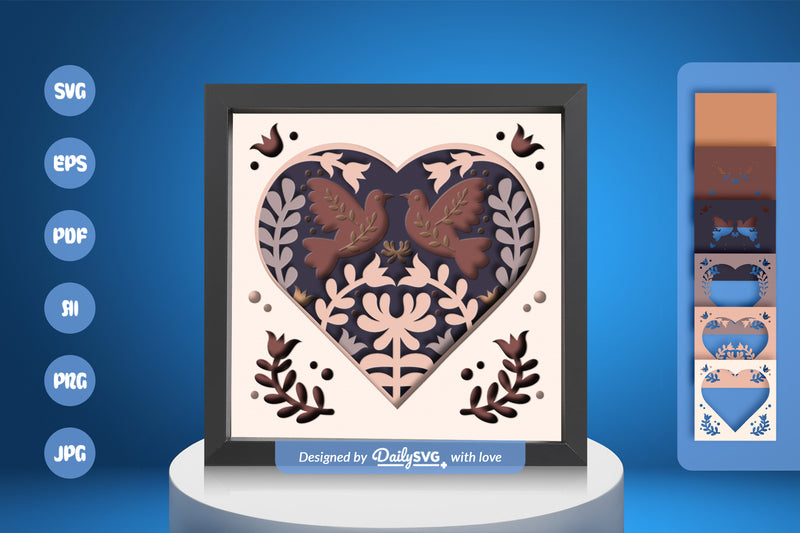 Discover the Love Bird Heart Folk Art Papercut SVG Bundle, perfect for creating charming, romantic crafts. Ideal for weddings, anniversaries, and heartfelt gifts, this bundle features intricate love bird and heart designs that add a touch of elegance to any project.