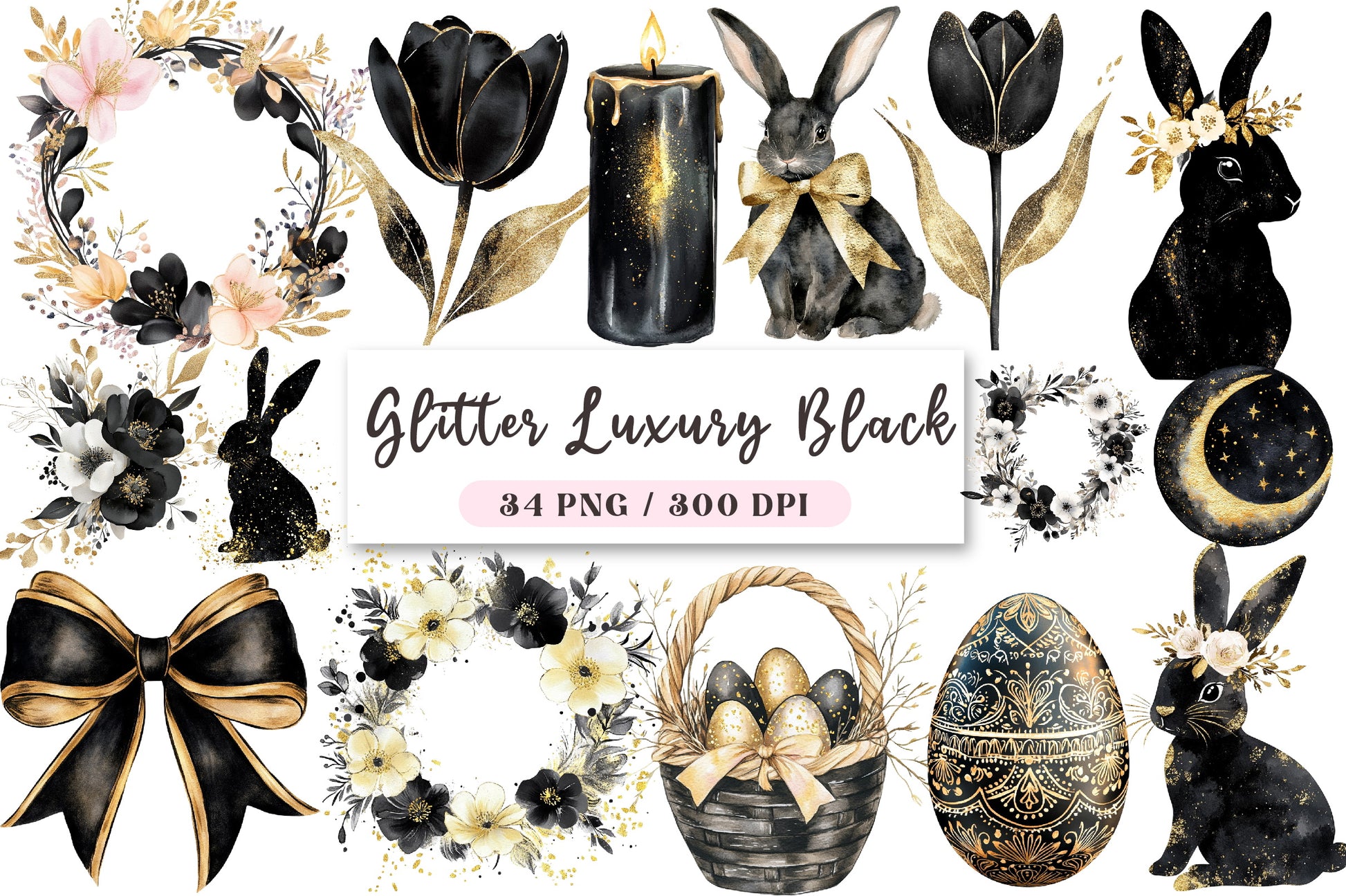 Elevate your creative projects with our Luxury Black Easter Glitter Clipart Bundle. This exquisite collection features dazzling black glitter designs, perfect for adding a touch of elegance to your Easter crafts. Ideal for digital scrapbooking, invitations, and more, these high-resolution graphics ensure your creations stand out. Unleash your imagination and transform ordinary projects into extraordinary masterpieces with this versatile clipart set. Perfect for designers seeking sophistication and style, our bundle offers endless possibilities for stunning visual impact. Discover the magic of glitter and make your Easter celebrations truly unforgettable.