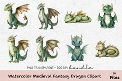 Medieval Fantasy Dragon Clipart Bundle