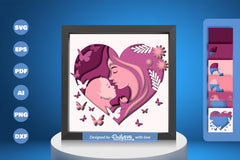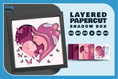 Mom and Baby Girl Heart Shape Papercut SVG Bundle