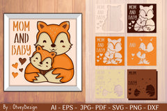 Mother and Baby Fox Shadow Box Layered Papercut SVG Bundle
