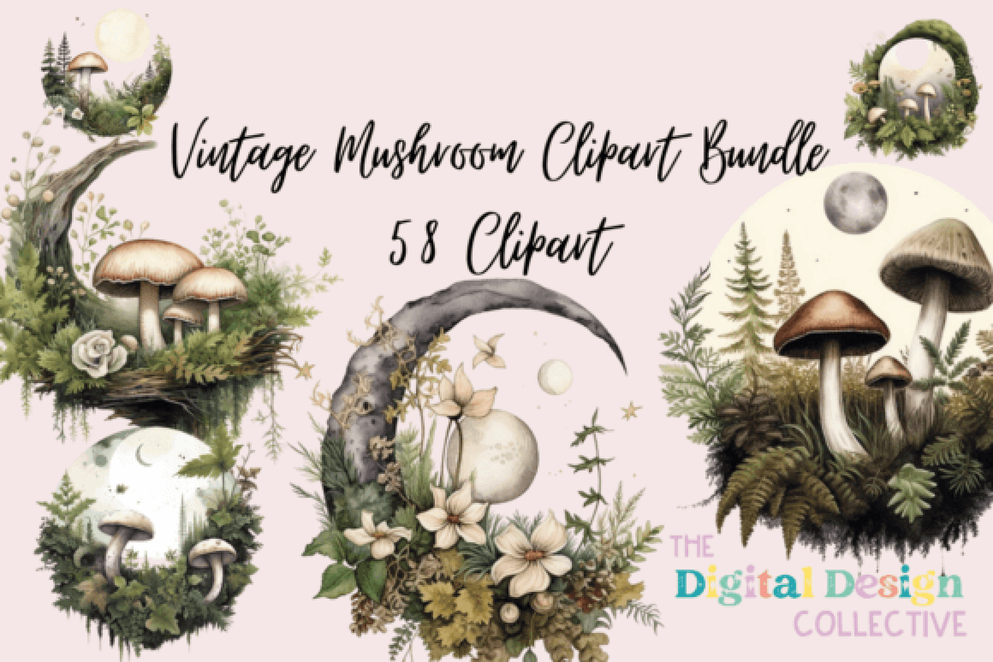 Enhance your creative projects with our Mushroom Clipart Bundle, featuring 1233 unique designs. Perfect for digital scrapbooking, whimsical invitations, and enchanting crafts. Discover the magic of mushrooms today!