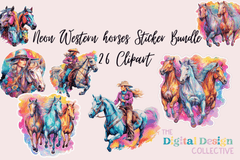 Enhance your projects with the Neon Western Horses Sticker Bundle Clipart, featuring vibrant horse designs perfect for western-themed crafts and digital creations.