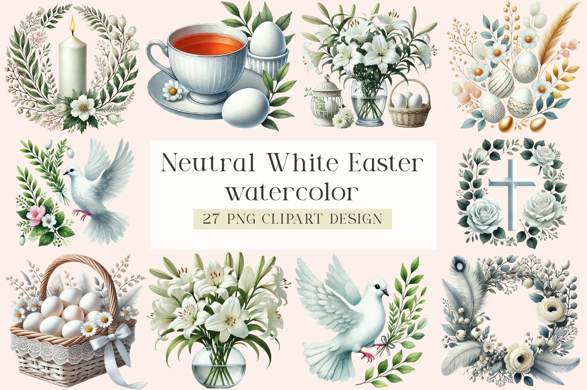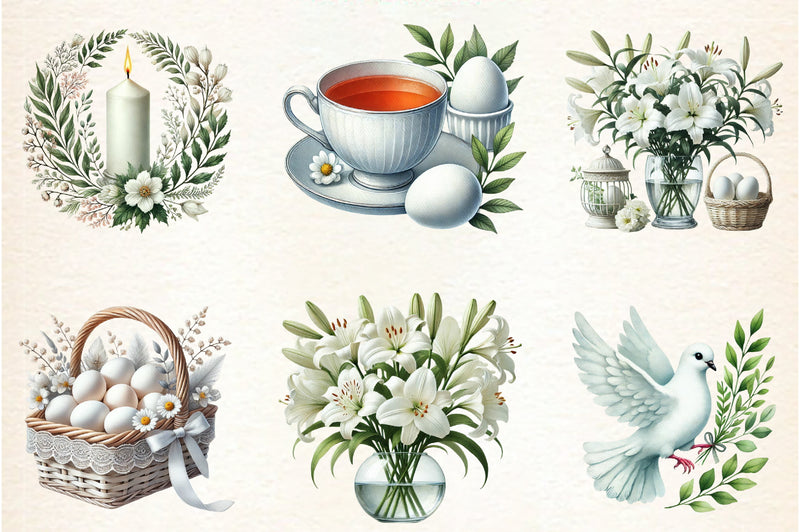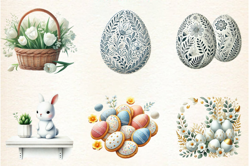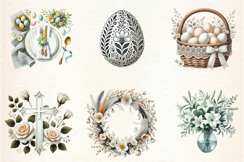 Neutral White Easter Clipart Bundle