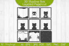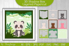 Panda Animals Shadow Box Layered Papercut SVG Bundle