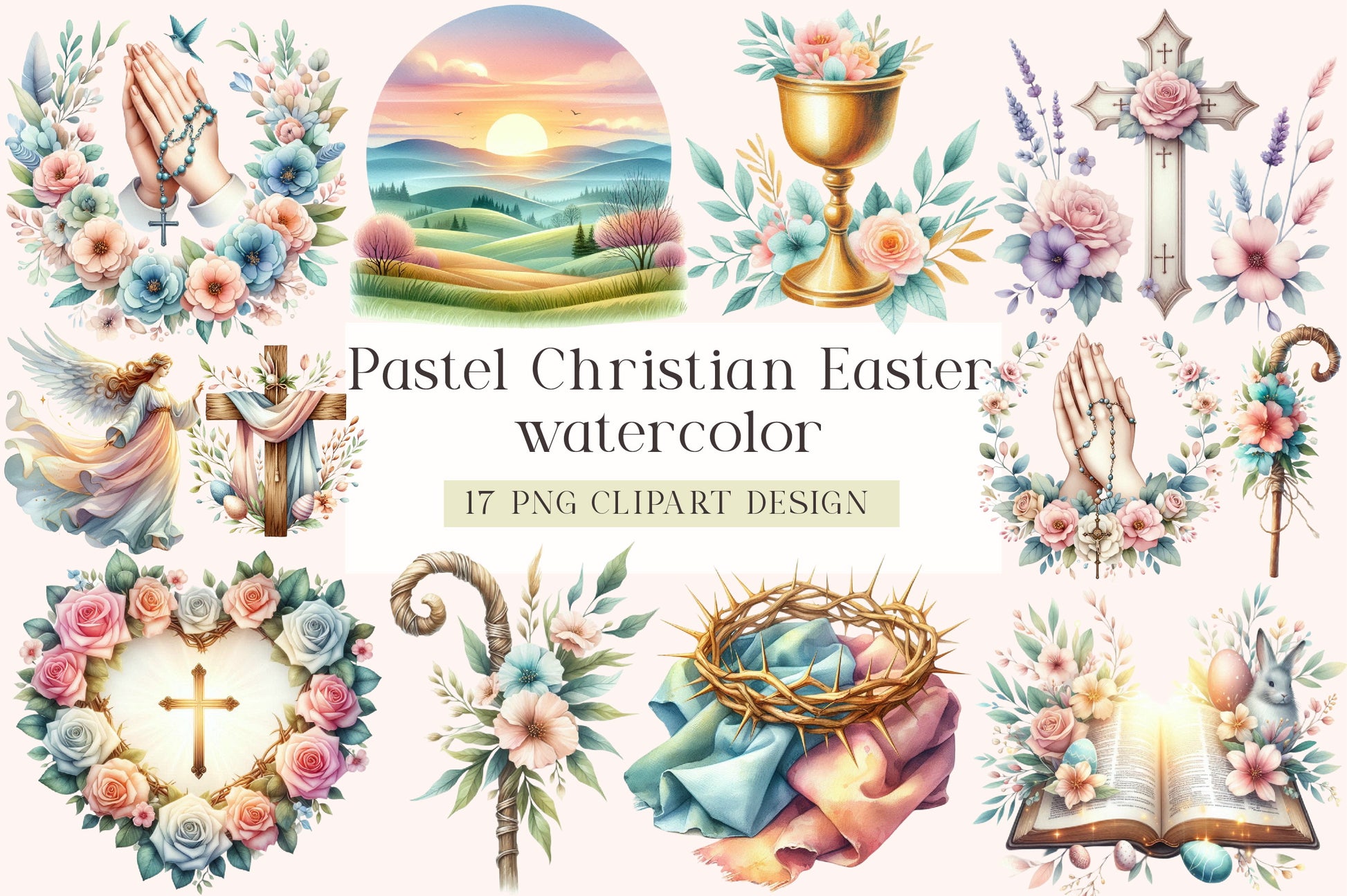 Celebrate the spirit of Easter with our Pastel Christian Easter Clipart Bundle, featuring charming designs perfect for festive crafts and decorations. Ideal for creating personalized greeting cards, vibrant scrapbooks, and unique digital projects, this collection brings a touch of pastel elegance to your Easter celebrations. Enhance your creative projects with these delightful illustrations, perfect for church events, Sunday school activities, and family gatherings. Transform your Easter crafts with this versatile clipart set, designed to inspire and captivate.