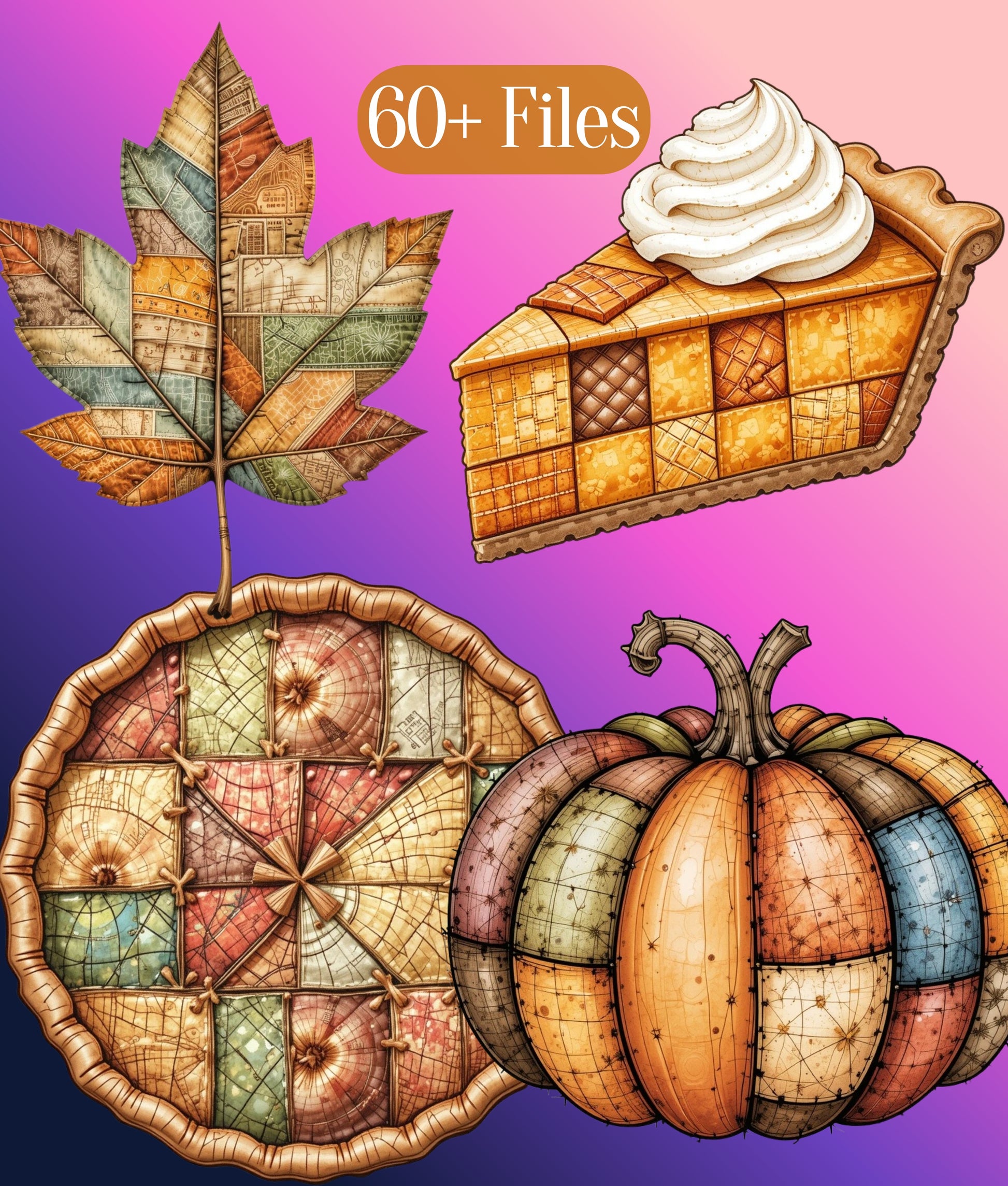 Enhance your holiday projects with the Patchwork Thanksgiving Clipart Bundle, featuring charming autumn designs perfect for festive crafts and seasonal decor. Ideal for scrapbooking, invitations, and DIY projects, this collection brings warmth and creativity to your Thanksgiving celebrations.