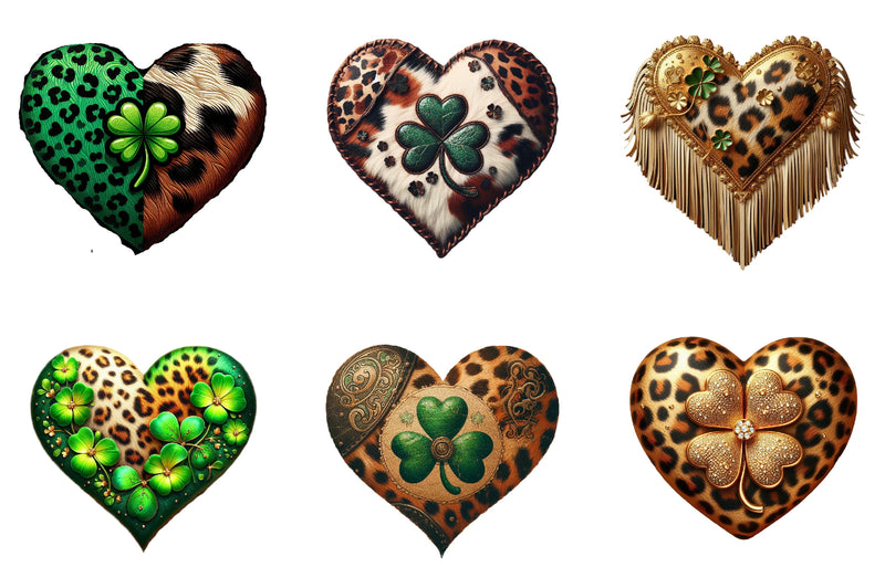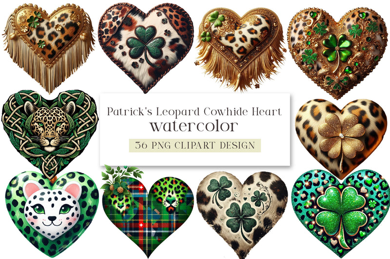 Patrick's Leopard Cowhide Heart Clipart Bundle