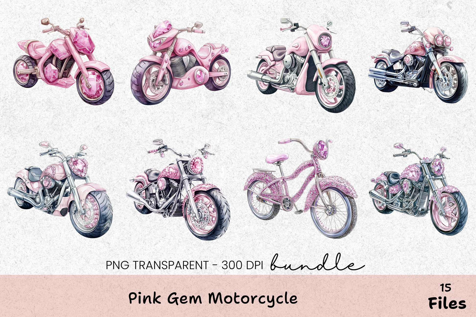 Rev up your creativity with our Pink Gem Motorcycle Clipart Bundle! Perfect for DIY projects, this collection features vibrant motorcycle designs, ideal for scrapbooking, invitations, and more. Unleash your artistic side with these high-quality, easy-to-use clipart images, perfect for adding a touch of adventure to any project. Whether you're crafting for a birthday party or creating unique decor, this bundle is your go-to for all things motorcycle-themed. Download now and start your creative journey!