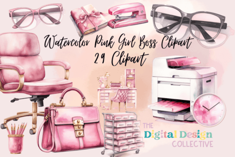 Empower your designs with the Pink Girl Boss Clipart Bundle, featuring chic and stylish illustrations perfect for creating inspiring projects, from planners to social media graphics.