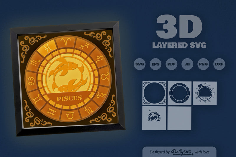Discover the enchanting Pisces Zodiac 3D Shadow Box Papercut SVG Bundle, perfect for astrology enthusiasts and creative crafters. This intricate design captures the mystical essence of Pisces, making it ideal for personalized gifts, home decor, and unique art projects. Elevate your crafting experience with this high-quality SVG bundle, designed for precision and ease of use.