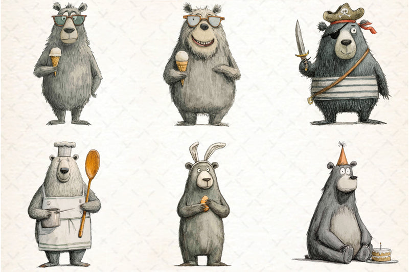 Unleash creativity with our Quirky Funny Bear Clipart Bundle, featuring whimsical bear designs perfect for playful projects and unique crafts.