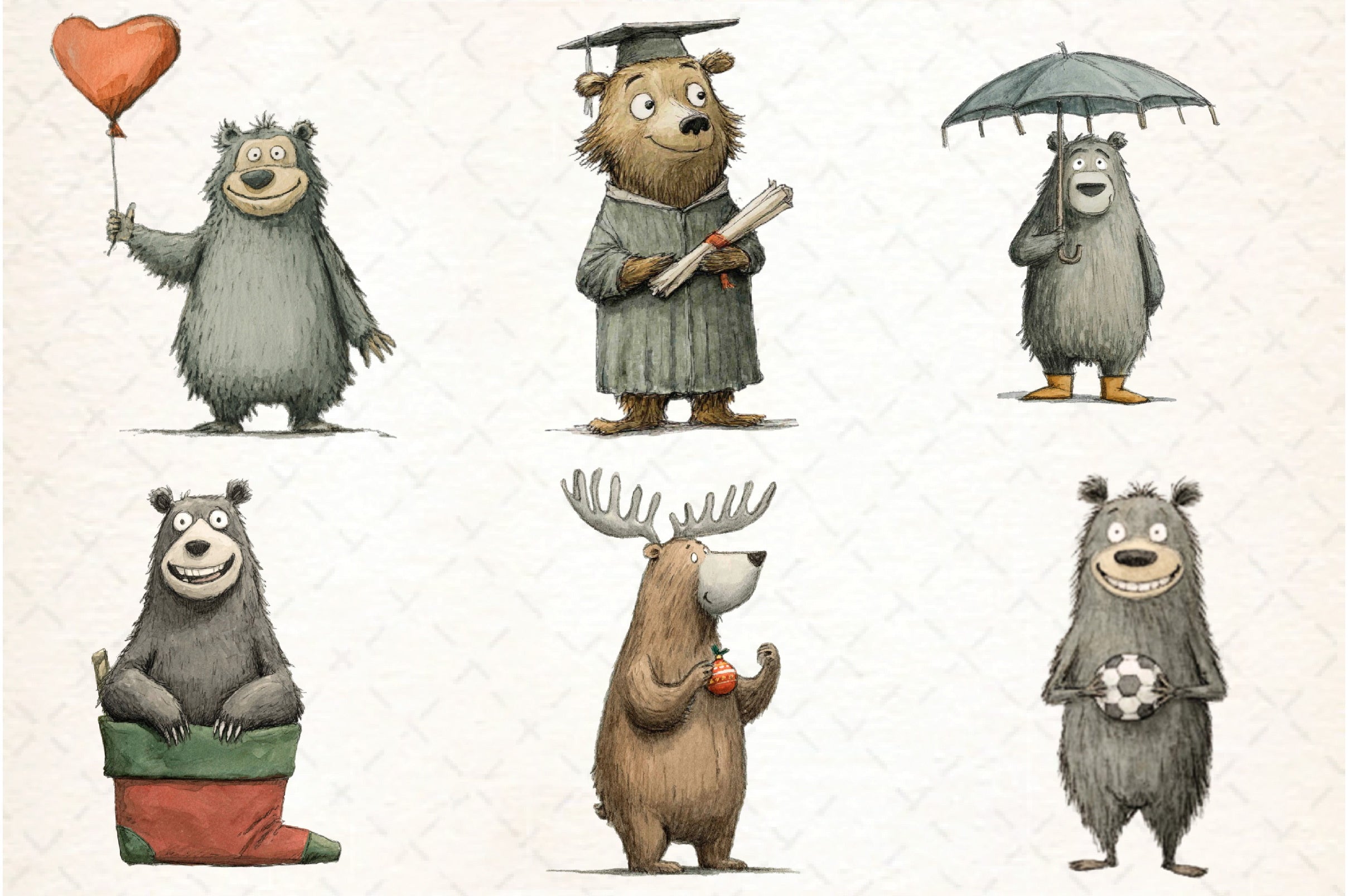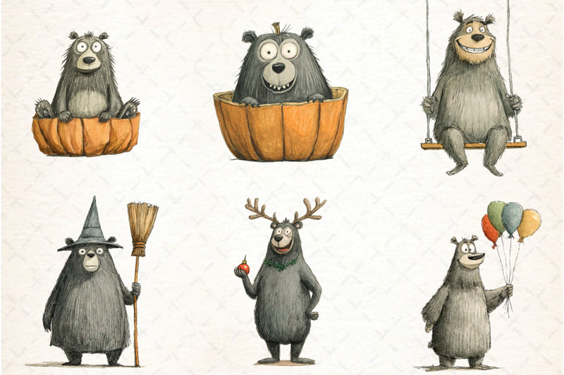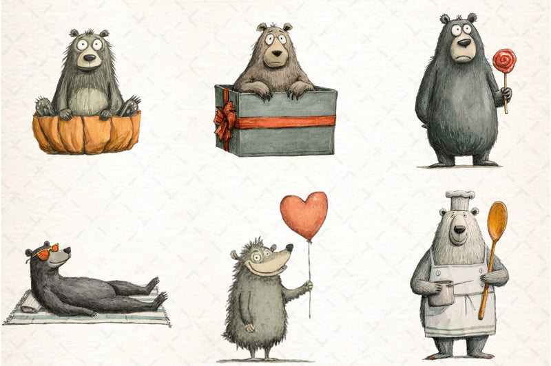 Transform your creations with this delightful collection of funny bear illustrations, ideal for adding a touch of humor to any design.