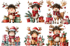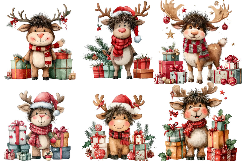 Quirky Funny Christmas Reindeer Clipart Bundle