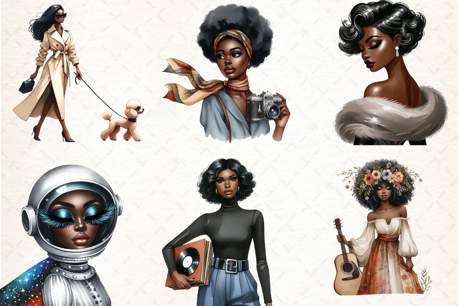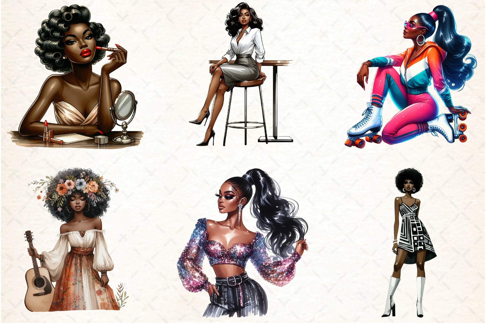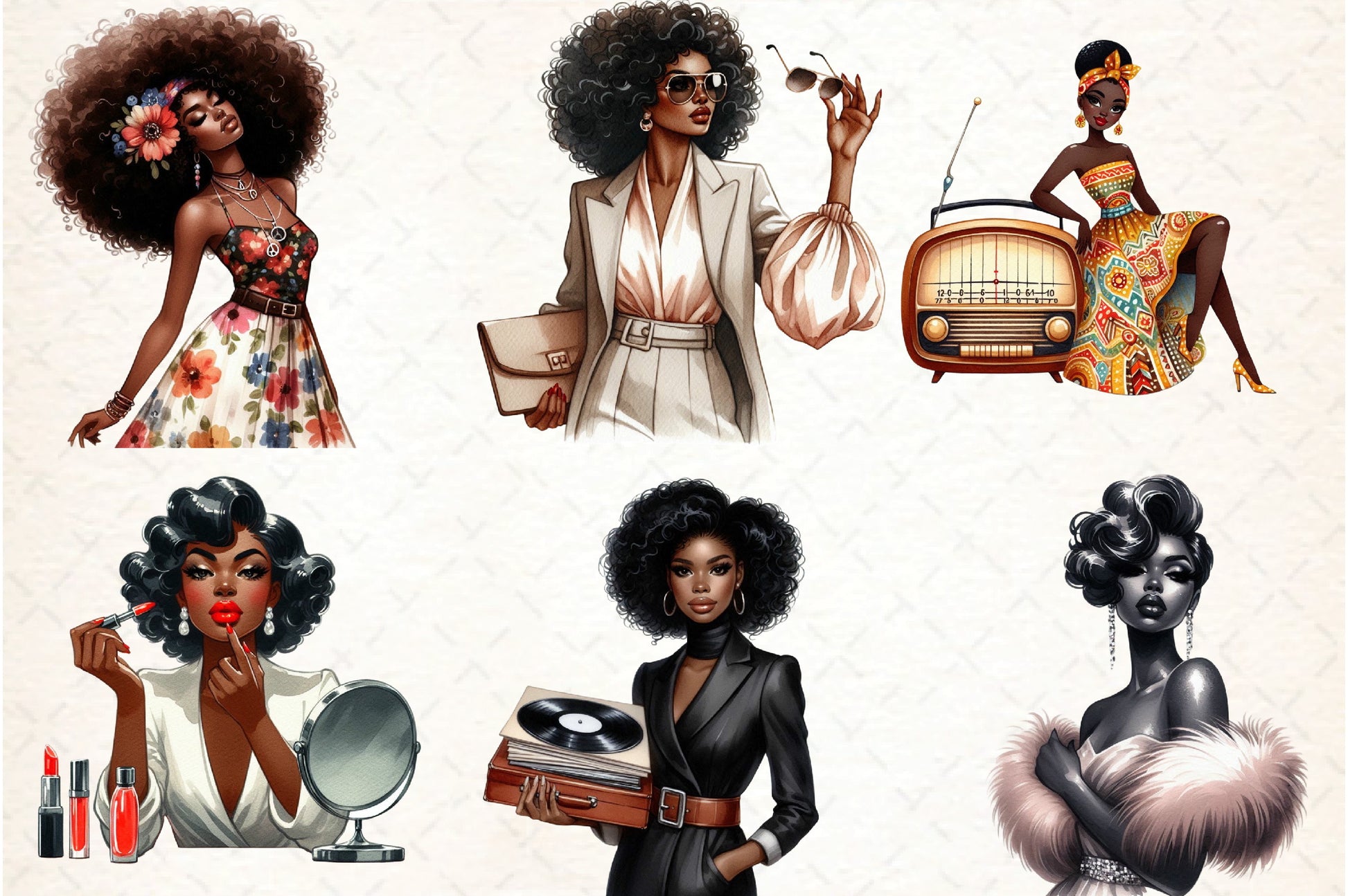 Retro Ebony Glam Clipart Bundle