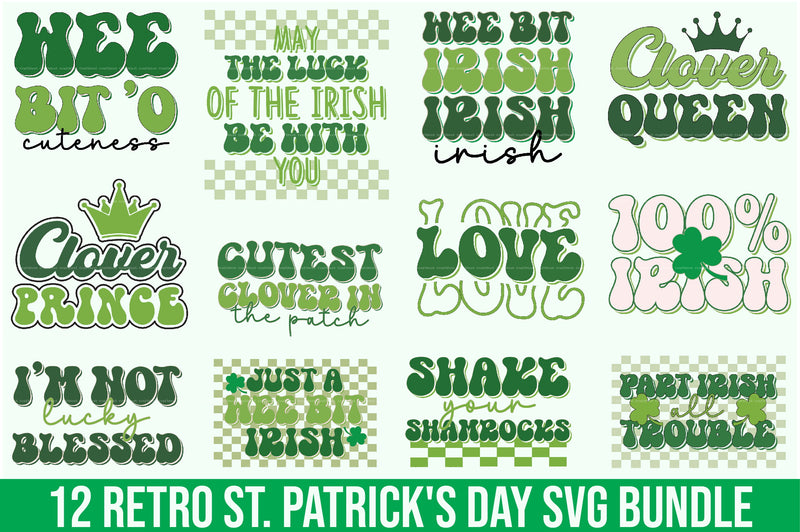 Celebrate with the Retro St. Patrick's Day SVG Bundle, featuring vintage-inspired designs perfect for festive crafts, apparel, and decorations. Ideal for DIY enthusiasts looking to add a touch of Irish charm to their projects.
