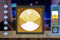 Explore the beauty of nature with the River and Mountain Papercut SVG Bundle, featuring intricate designs perfect for crafting stunning landscapes in your DIY projects.