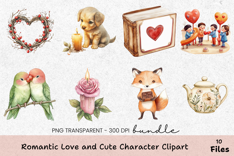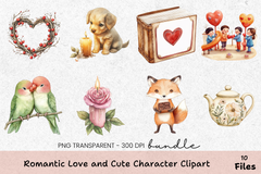 Ignite your creativity with the Romantic Love & Cute Character Clipart Bundle, a delightful collection perfect for crafting heartfelt projects. Featuring charming designs, this bundle is ideal for creating personalized gifts, enchanting scrapbooks, and whimsical decor. Unleash your imagination with these adorable characters, perfect for Valentine's Day, anniversaries, or any occasion that celebrates love. Transform your crafts with this versatile clipart set, designed to add a touch of romance and cuteness to your creative endeavors.