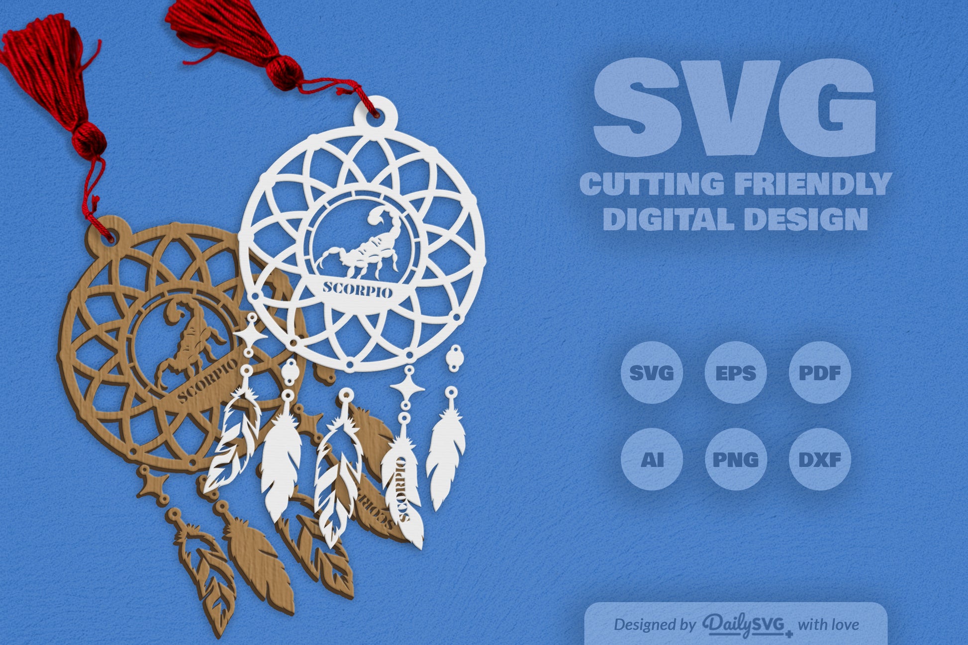 Capture cosmic energy with the Scorpio Dream Catcher Set SVG Bundle, featuring intricate designs perfect for mystical crafts and celestial home decor projects.