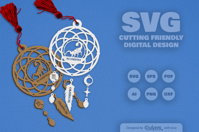 Capture celestial charm with the Scorpio Dream Catcher Set SVG Bundle, featuring intricate designs perfect for mystical crafts and personalized decor projects.