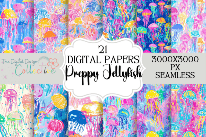 Enhance your creative projects with Seamless Preppy Jellyfish Pattern Papers, featuring vibrant jellyfish designs perfect for ocean-themed crafts and decor.