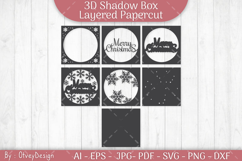 Shadow Box Merry Christmas Layered Papercut SVG Bundle