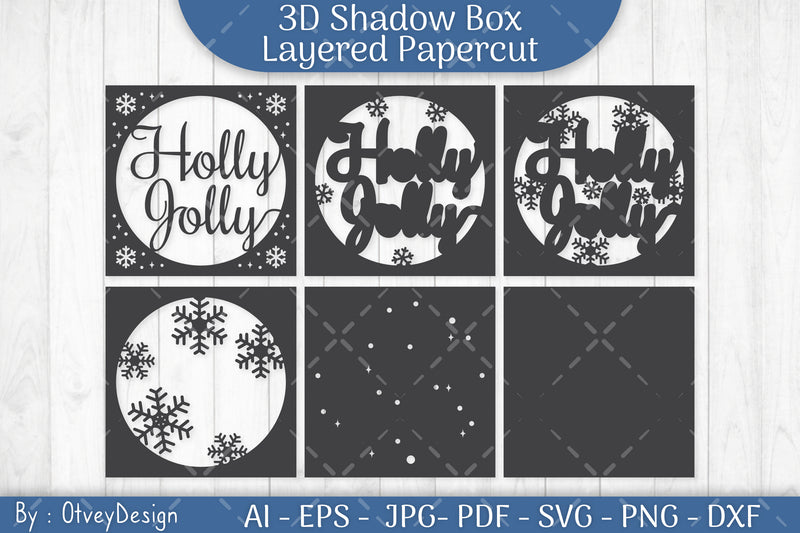 Shadow Box Merry Christmas Layered Papercut SVG Bundle