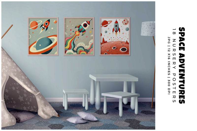 Transform your nursery into a cosmic wonderland with Space Adventures Posters. Featuring vibrant, child-friendly designs of planets, rockets, and astronauts, these posters inspire curiosity and imagination in your little one. Perfect for creating an educational and enchanting space-themed nursery.