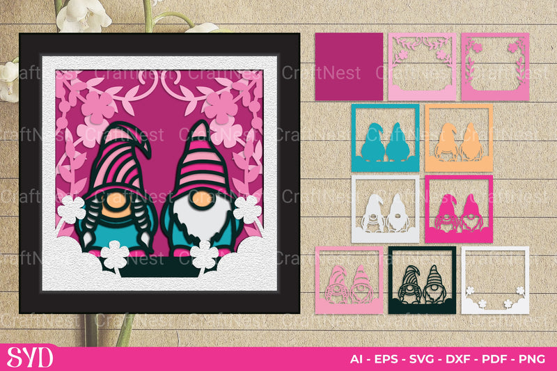 Spring Gnome 3D Layered Papercut Clipart Bundle