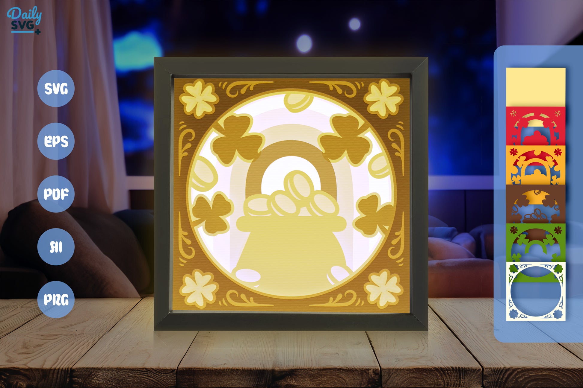 Celebrate St. Patrick's Day with our Pot of Gold Papercut SVG Bundle, featuring intricate designs perfect for festive crafts and decorations. Ideal for creating unique holiday cards, party decor, and more.