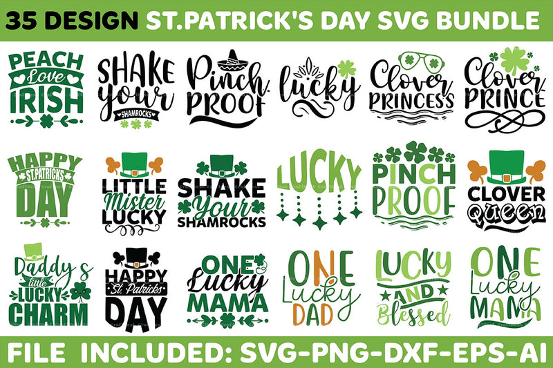Celebrate the luck of the Irish with our St. Patrick's Day SVG Design Bundle. Perfect for crafting enthusiasts, this collection features festive shamrocks, leprechauns, and Celtic patterns, ideal for creating unique holiday decorations and apparel.