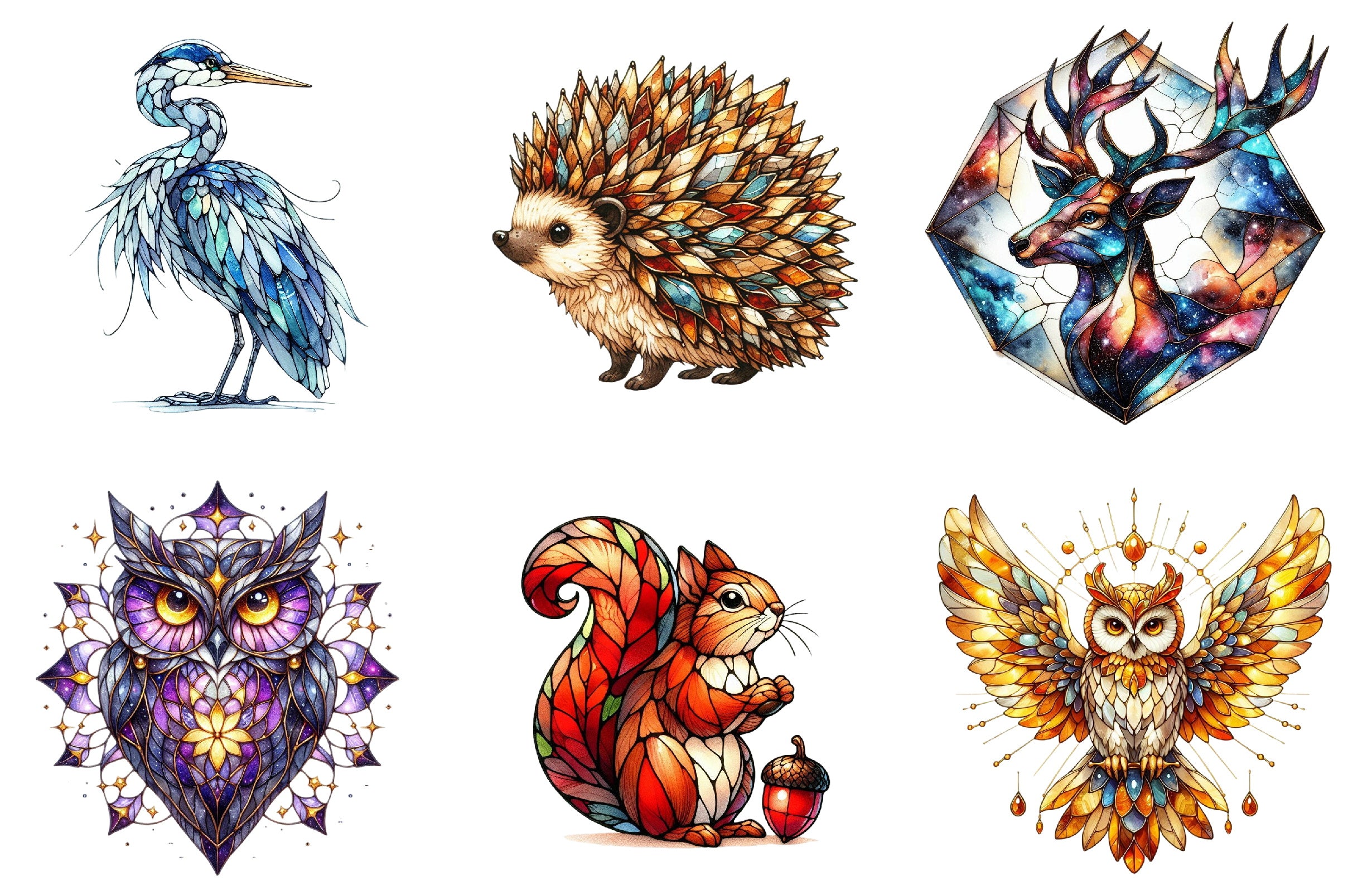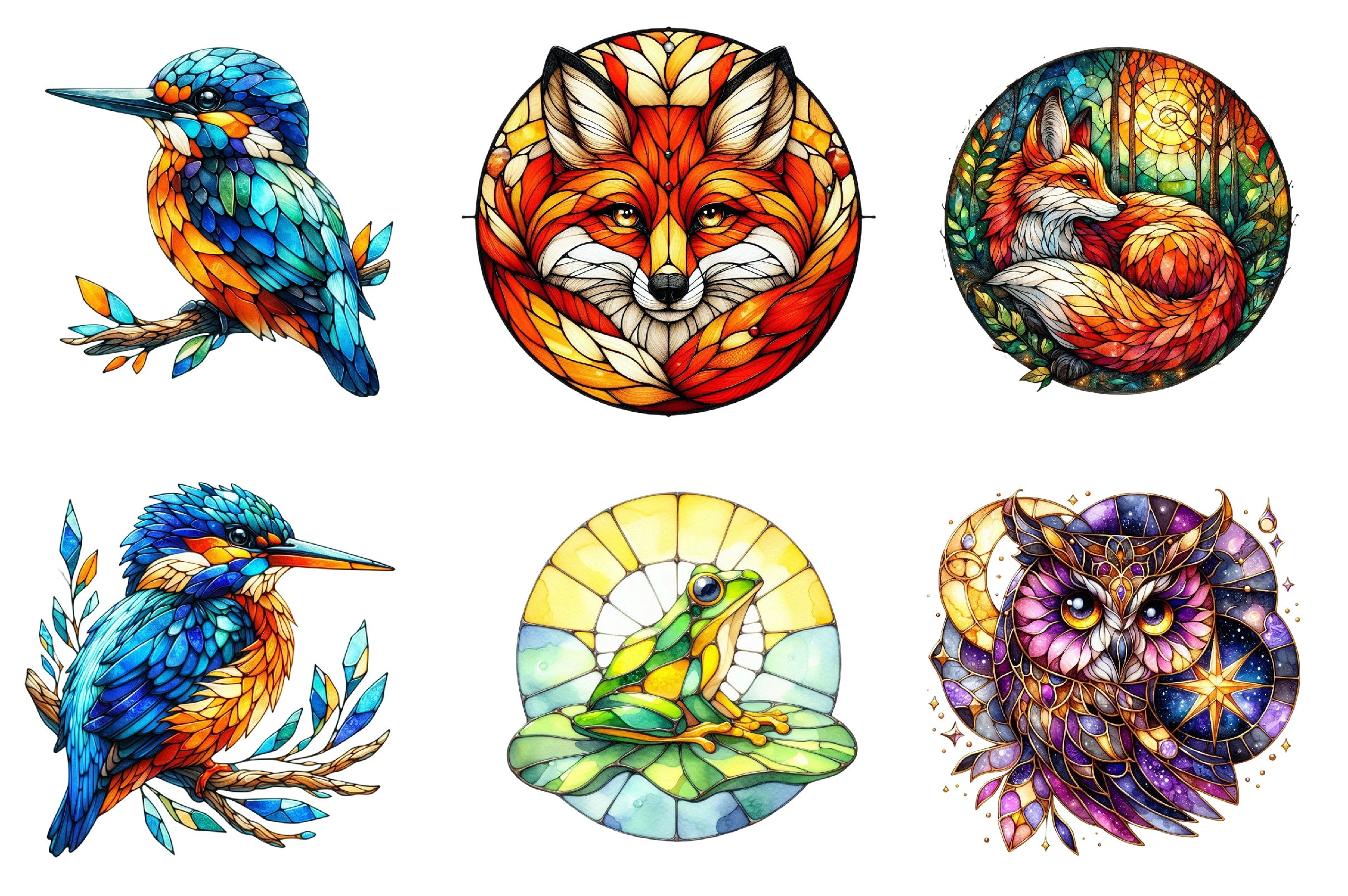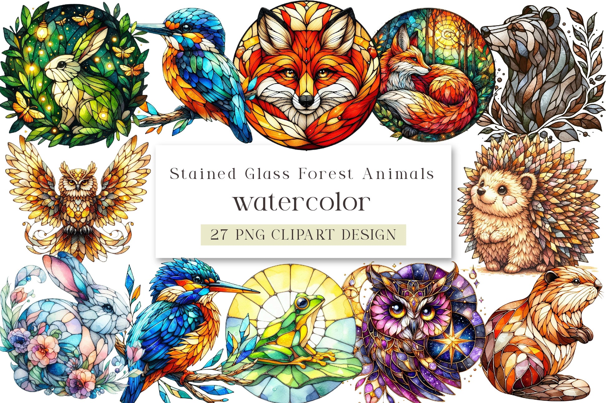 Discover the enchanting world of our Stained Glass Forest Animals Clipart Bundle, featuring beautifully crafted designs of woodland creatures. Perfect for DIY projects, scrapbooking, and creative crafts, these vibrant illustrations bring a touch of nature's magic to your art. Ideal for crafters, educators, and designers seeking unique, high-quality clipart for their projects. Transform your creations with the charm of forest animals, from majestic deer to playful foxes, all captured in stunning stained glass style. Elevate your artistic endeavors with this versatile and captivating collection.