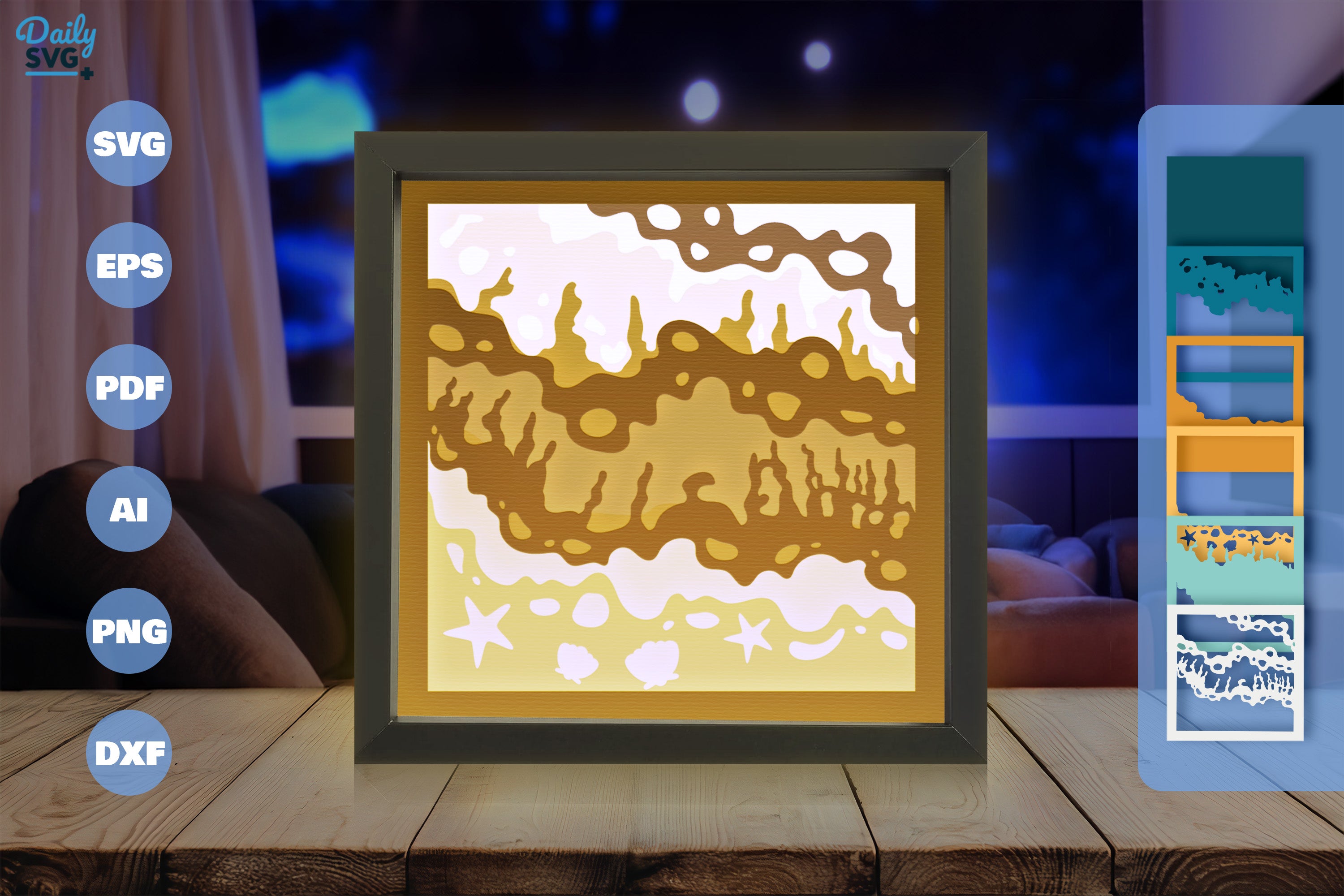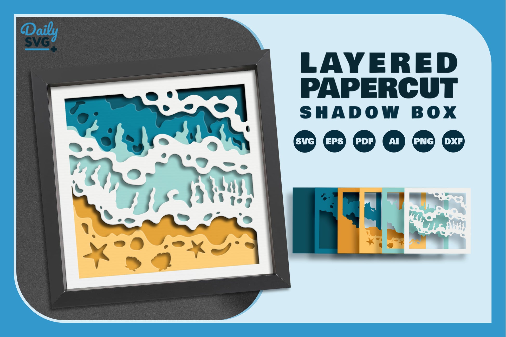 Enhance your summer crafts with the Summer Beach Papercut SVG Bundle, featuring intricate beach-themed designs perfect for DIY projects, scrapbooking, and personalized gifts. Ideal for crafters looking to add a touch of seaside charm to their creations.