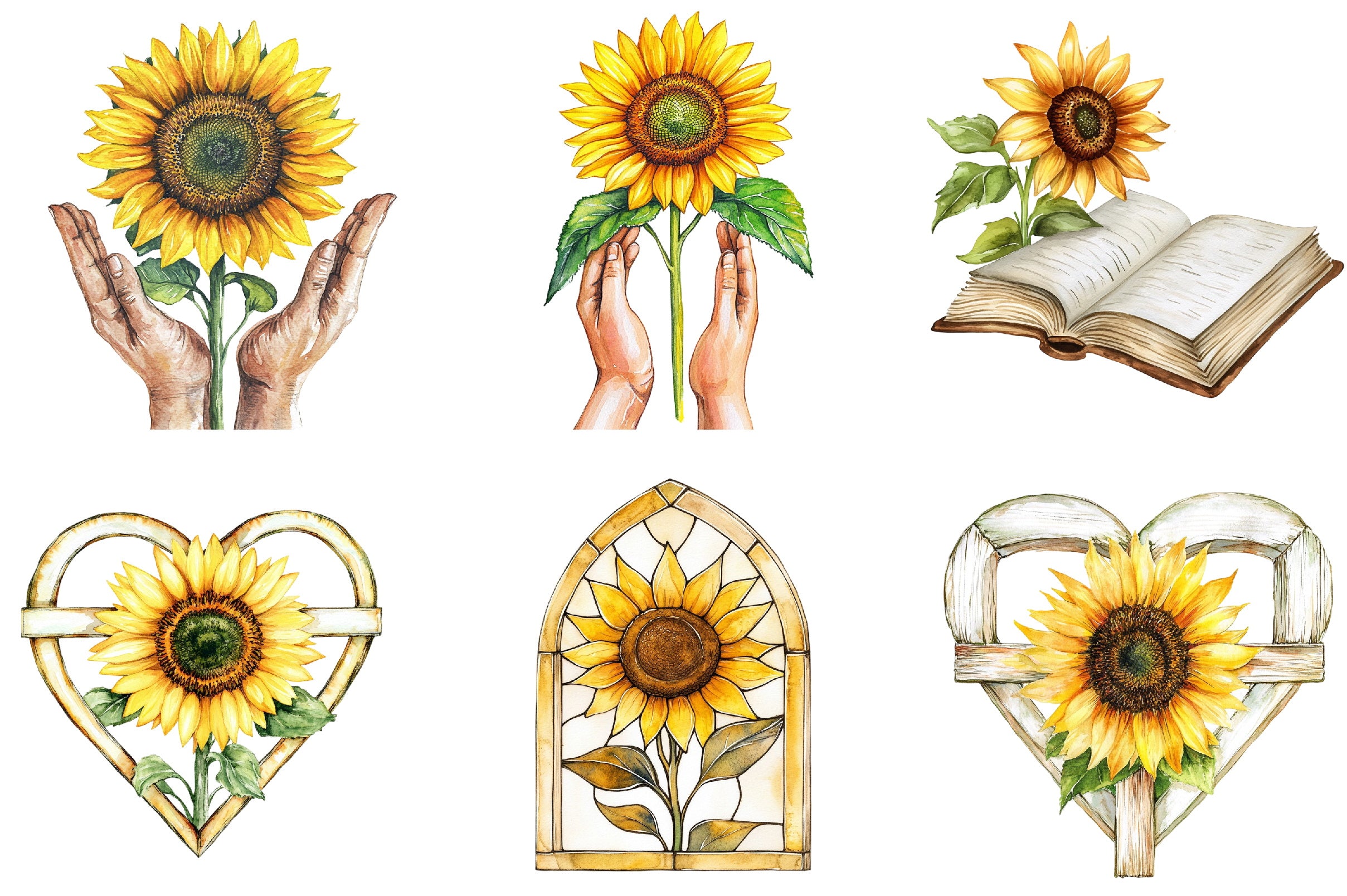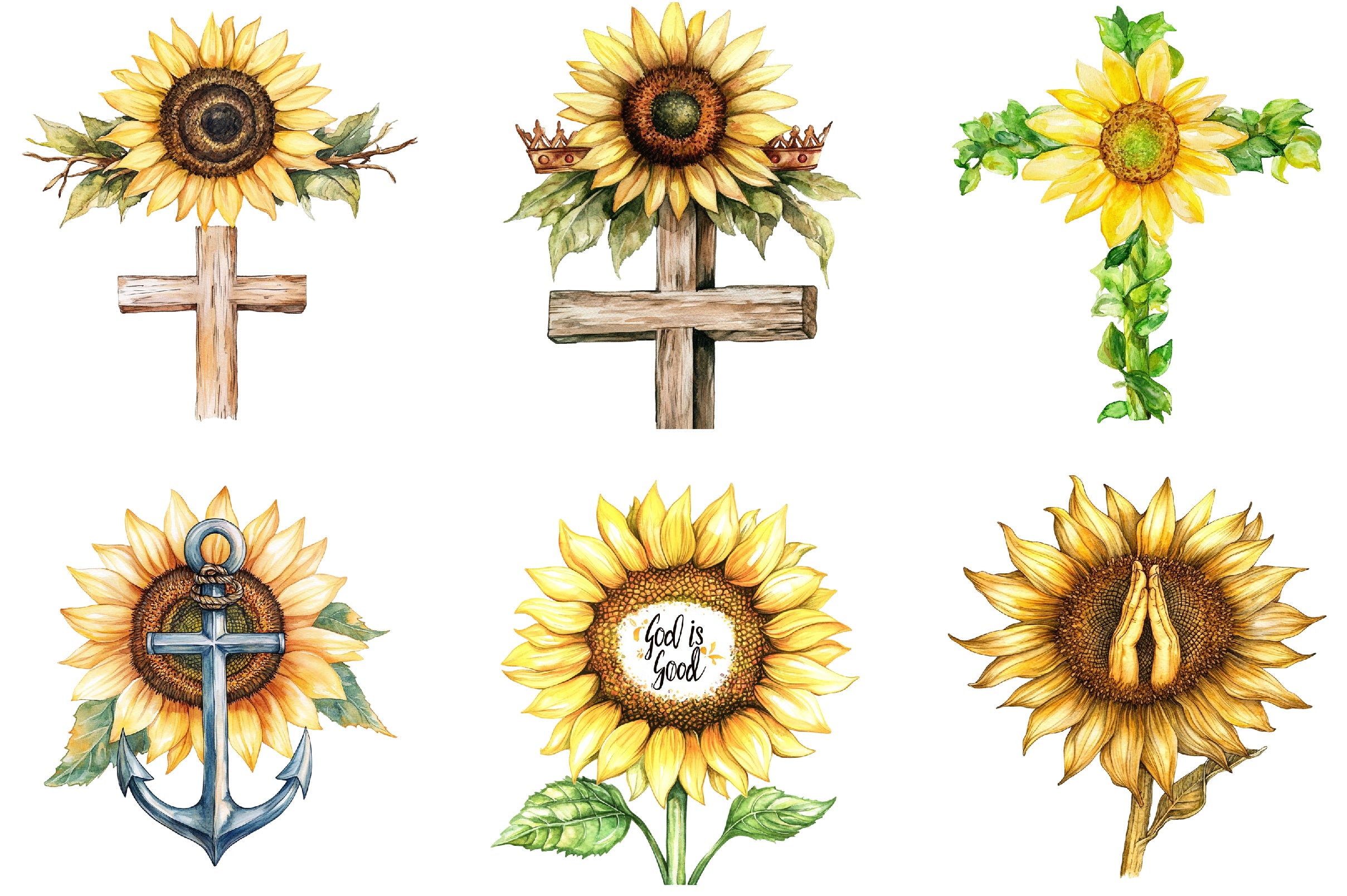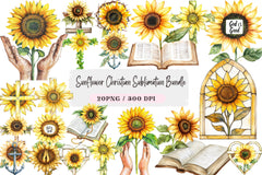Illuminate your projects with the Sunflower Christian Clipart Bundle, featuring vibrant, faith-inspired designs perfect for church bulletins, Sunday school crafts, and spiritual scrapbooking. This versatile collection offers a radiant array of sunflowers and Christian symbols, ideal for creating uplifting and meaningful art. Enhance your creative journey with these high-quality, printable graphics, designed to inspire and spread joy. Perfect for digital and print use, this bundle is a must-have for anyone looking to add a touch of divine beauty to their work.