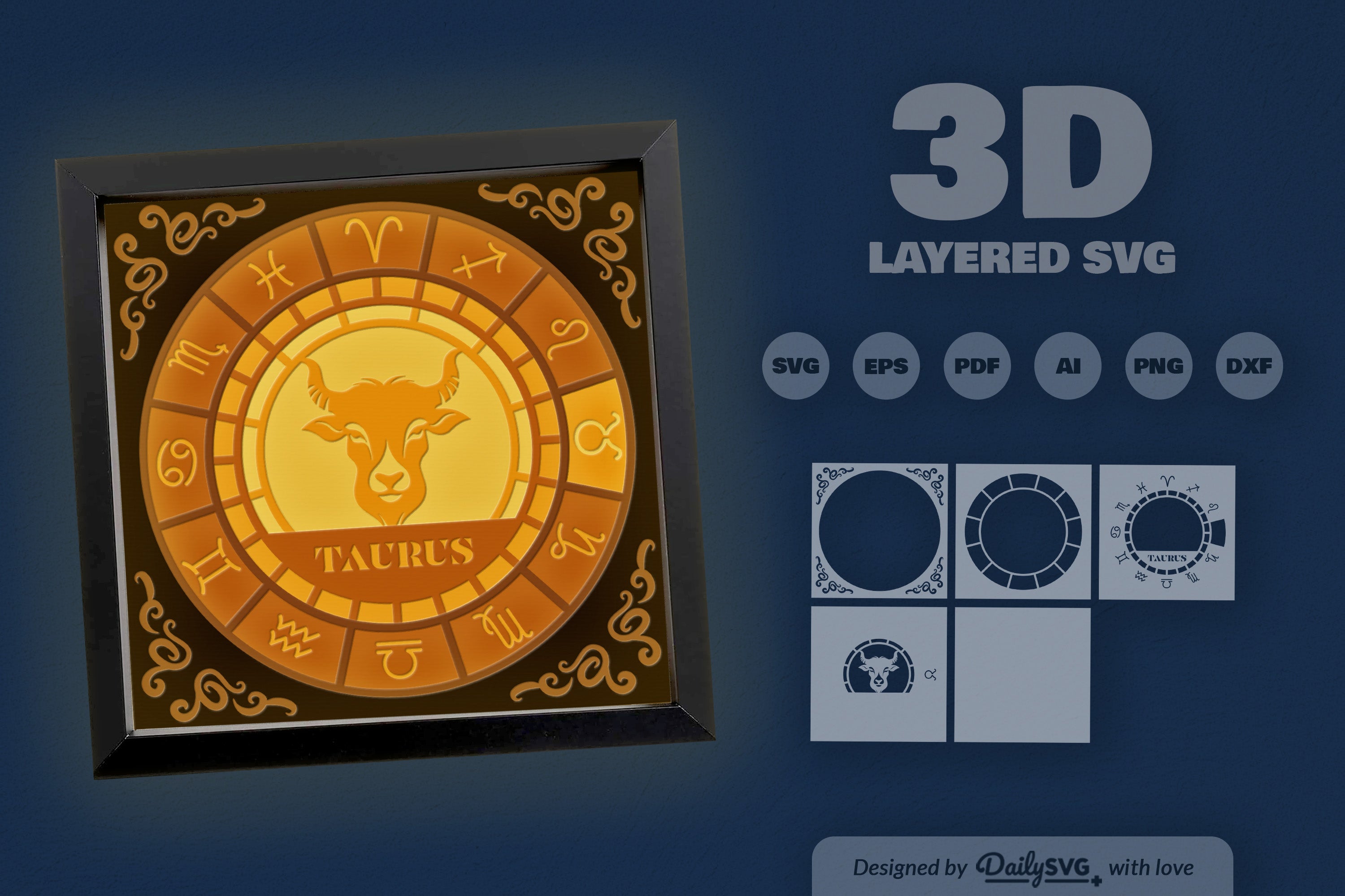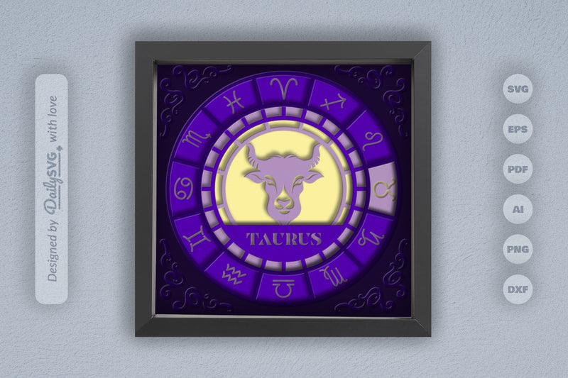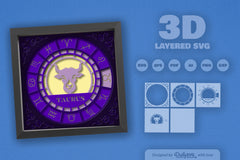 Taurus Zodiac 3D Shadow Box Papercut SVG Bundle