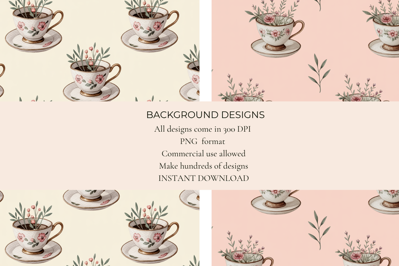 Transform your creative projects with Teacups Seamless Papers, offering charming teacup designs perfect for scrapbooking, card making, and digital crafts. Elevate your artistic endeavors with these high-quality, versatile patterns, ideal for adding a touch of elegance to any project. Discover endless possibilities with our delightful teacup motifs, designed to inspire and captivate. Perfect for DIY enthusiasts and professional designers alike, these seamless papers are your go-to choice for unique and stylish creations.