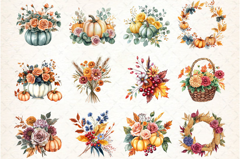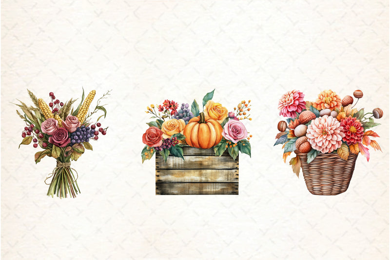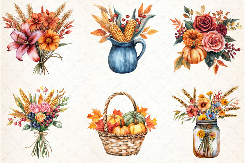 Enhance your holiday projects with our Thanksgiving Floral Arrangement Clipart Bundle, featuring exquisite autumn-themed designs perfect for seasonal crafts and decorations. Capture the essence of Thanksgiving with vibrant floral illustrations, ideal for greeting cards, invitations, and more. Transform your creative ideas into reality with this versatile clipart collection, designed to bring warmth and charm to any project. Celebrate the season with unique, high-quality graphics that embody the spirit of gratitude and togetherness.