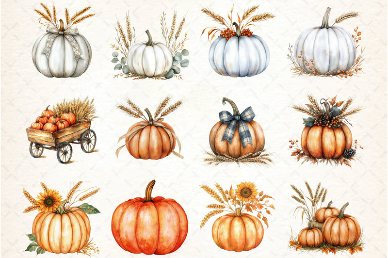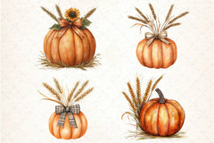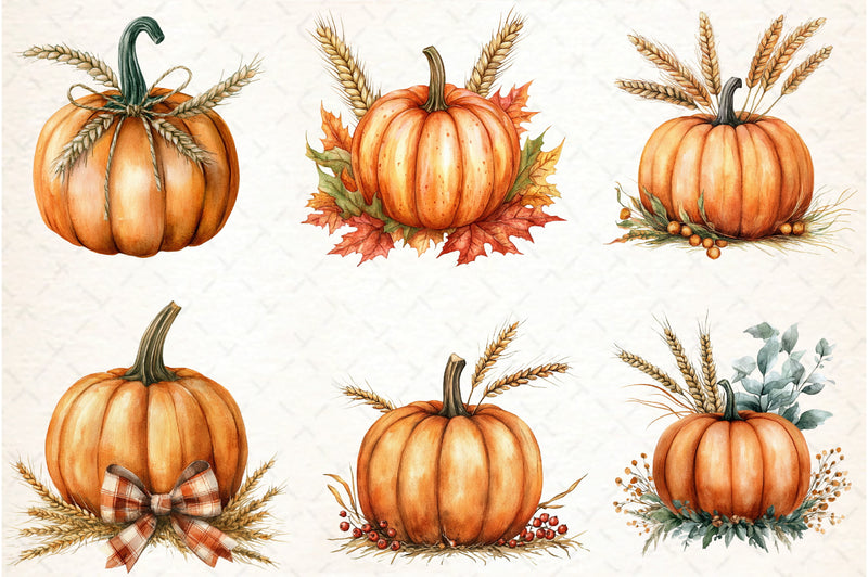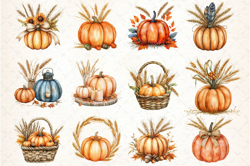 Thanksgiving Pumpkin and Wheat Clipart Bundle