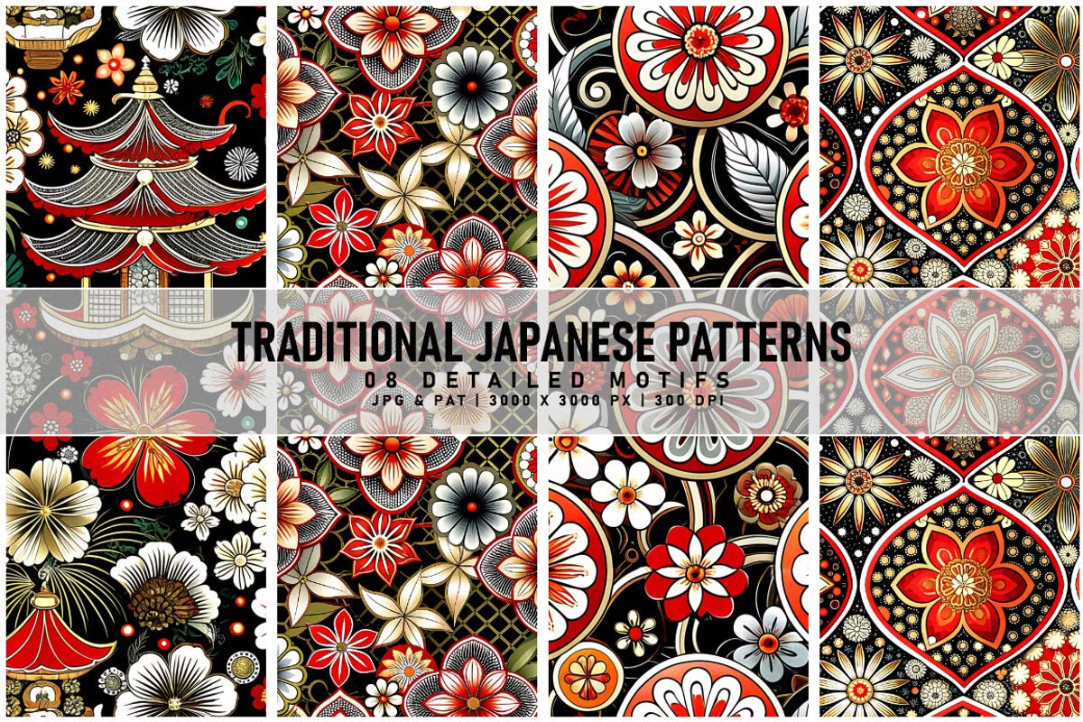 Discover the elegance of Traditional Japanese Patterns, featuring intricate designs perfect for enhancing your home decor, fashion projects, and crafts. Immerse yourself in the timeless beauty of Japanese artistry with these exquisite patterns.