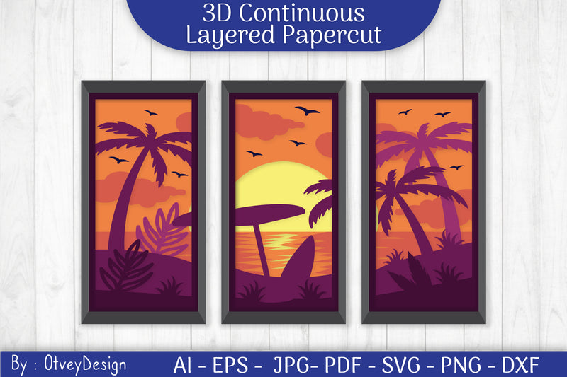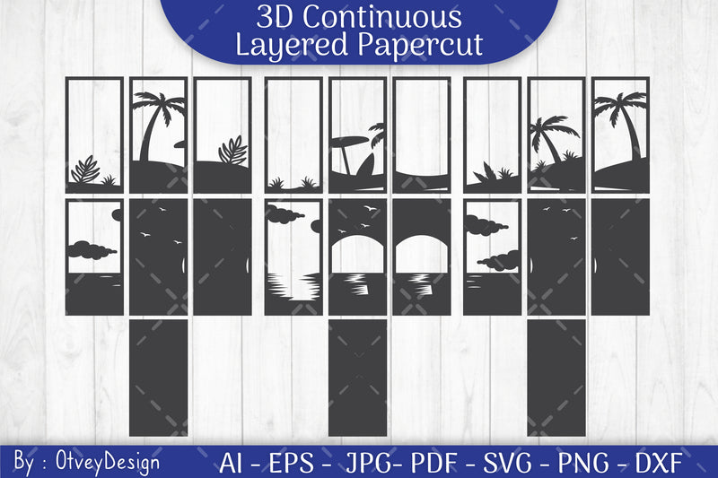 Transform your crafts with the Tropical Beach 3D Layered Papercut SVG Bundle, featuring stunning beach scenes perfect for summer-themed projects and home decor. Ideal for crafters seeking unique, layered designs to bring a touch of paradise to their creations.