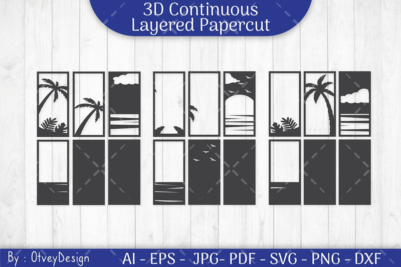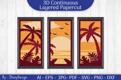 Discover the Tropical Beach 3D Layered Papercut SVG Bundle, perfect for creating stunning beach-themed crafts. This bundle features intricate designs of palm trees, ocean waves, and sunsets, ideal for home decor, scrapbooking, and personalized gifts. Elevate your crafting projects with this versatile and easy-to-use SVG collection.